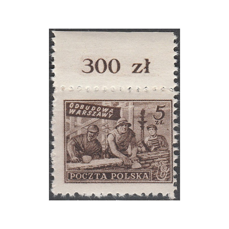 Odbudowa Warszawy. Znaczek czysty bez podlepki. Suma kontrolna na marginesie.