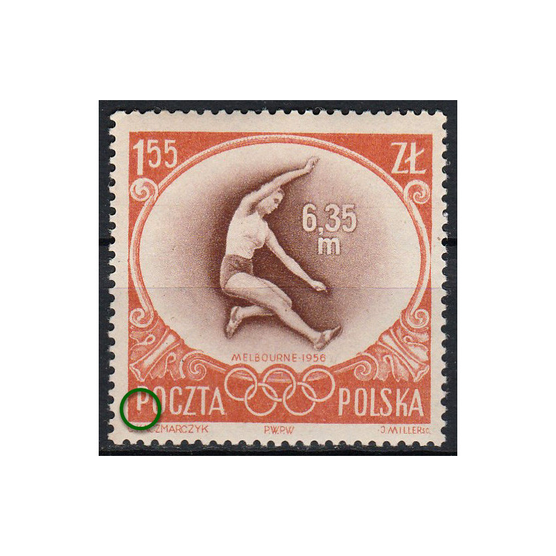 XVI Igrzyska Olimpijskie w Melbourne. Znaczek czysty bez podlepki z błędem B1.
