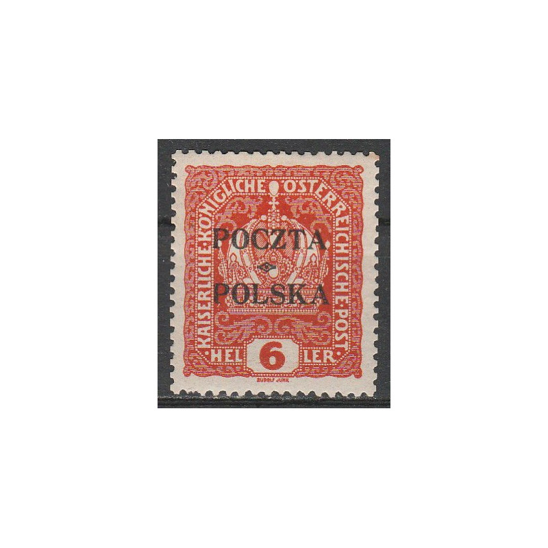 Wydanie przedrukowane na znaczkach austriackich. Znaczek czysty ze śladem podlepki. Gwarancja Z. Wiatrowski.