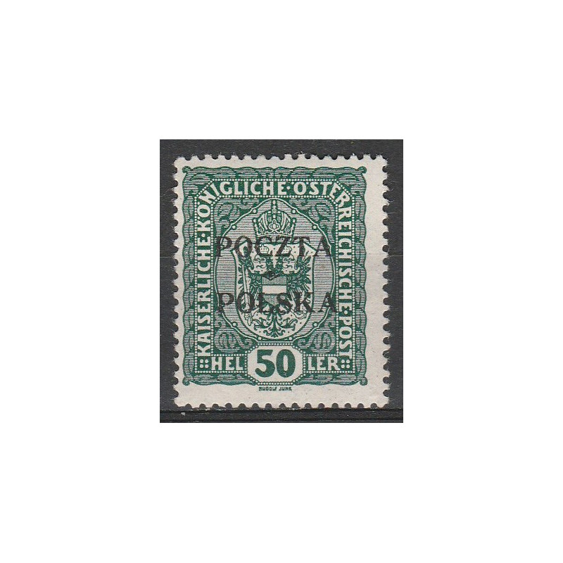 Wydanie przedrukowane na znaczkach austriackich. Znaczek czysty ze śladem po podlepce. Gwarancja Z. Wiatrowski.