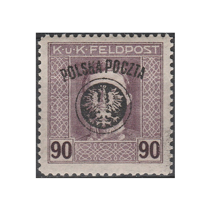 Wydanie przedrukowane na znaczkach austro-węgierskiej poczty polowej. Znaczek czysty bez podlepki. Gwarancja Z. Wiatrowski.