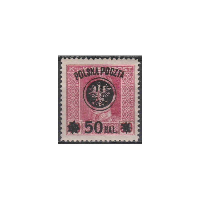 Wydanie przedrukowane na znaczkach austro-węgierskiej poczty polowej. Znaczek czysty bez śladu podlepki z rzadkim błędem B21. Gwarancja J. Berbeka.