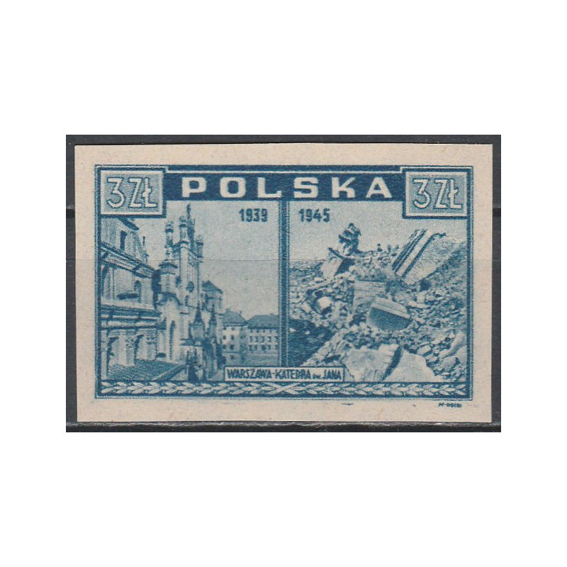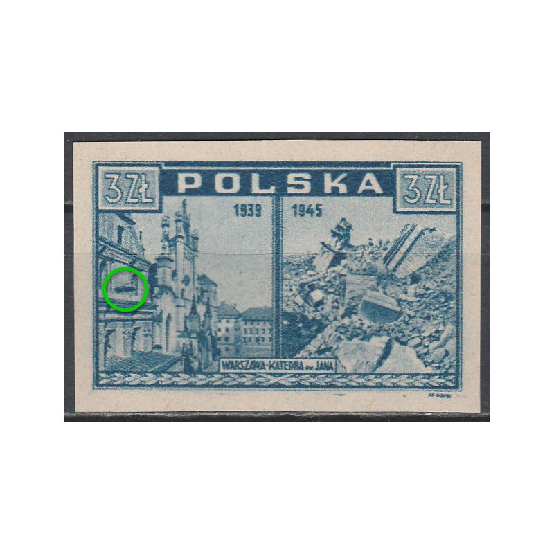 Zniszczenia wojenne Warszawy - "Warszawa oskarża". Znaczek czysty bez podlepki z błędem B1.