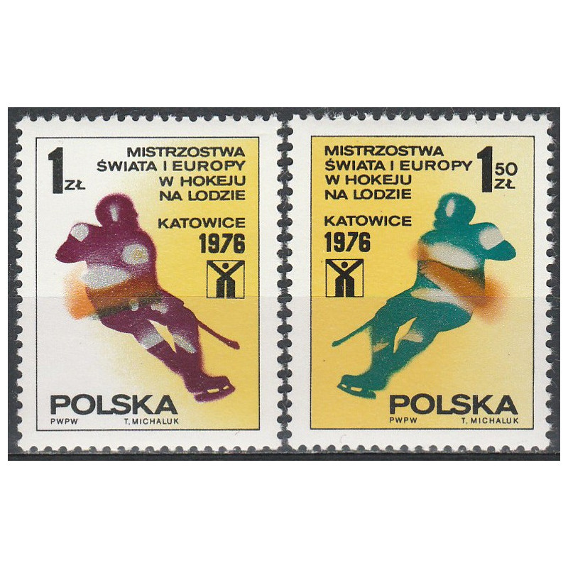 Mistrzostwa Świata i Europy w hokeju na lodzie. Znaczki czyste bez podlepki.