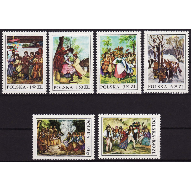 Polskie zwyczaje ludowe. Znaczki czyste bez podlepki.