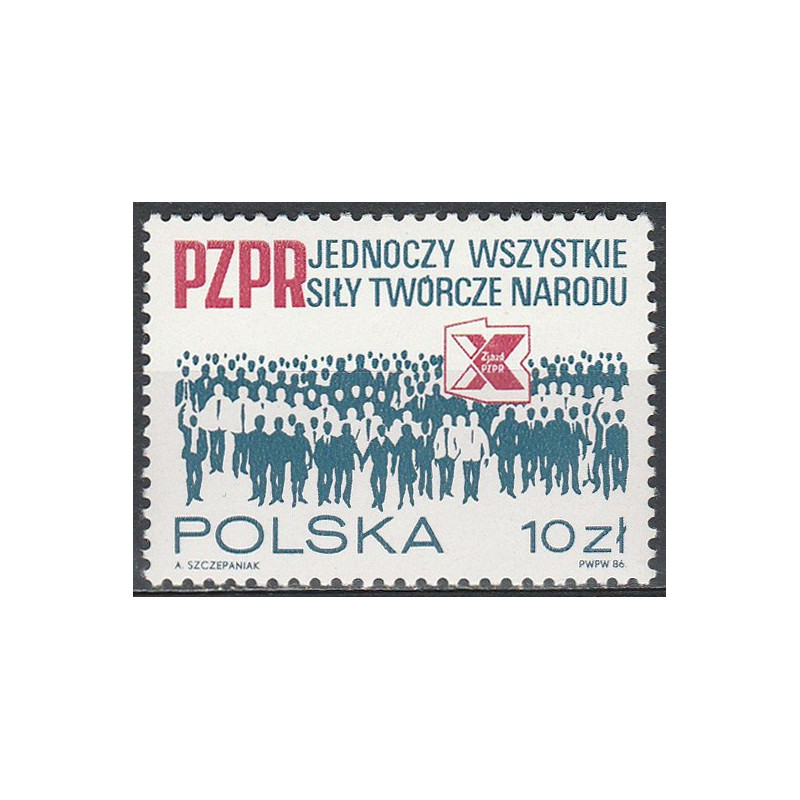 X Zjazd Polskiej Zjednoczonej Partii Robotniczej. Znaczek czysty bez podlepki.