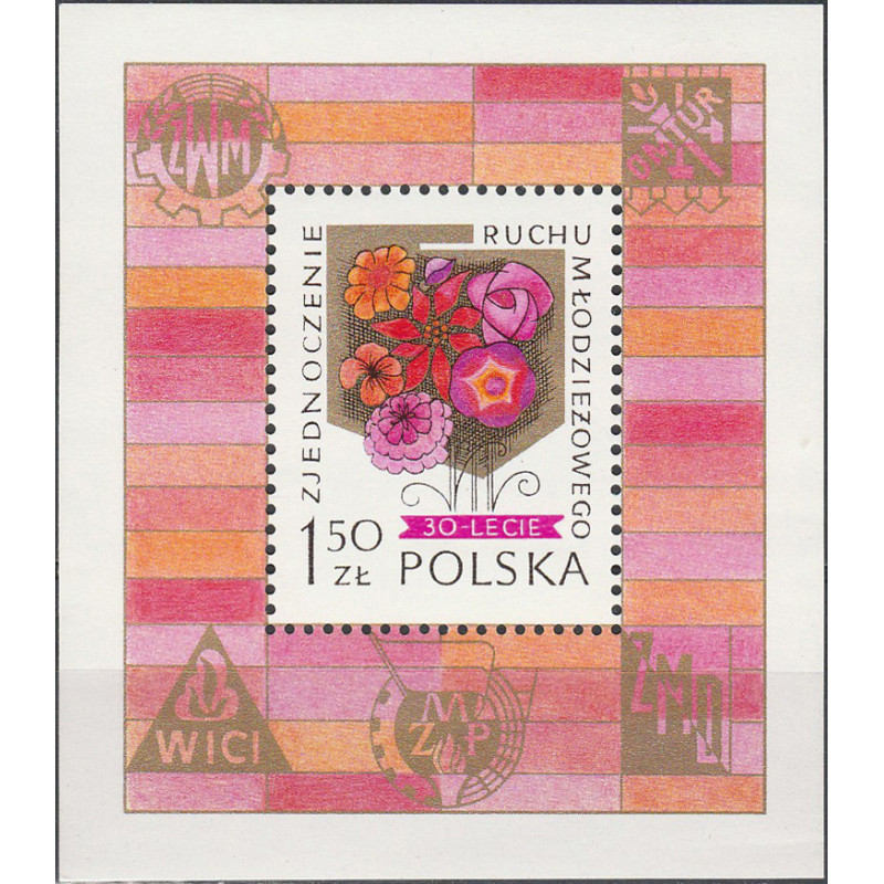 30. rocznica Zjednoczenia Polskiego Ruchu Młodzieżowego. Blok czysty bez podlepki.