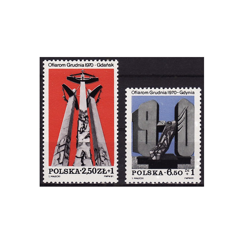 Pomniki Ofiarom Grudnia 1970r. Znaczki czyste bez podlepki.