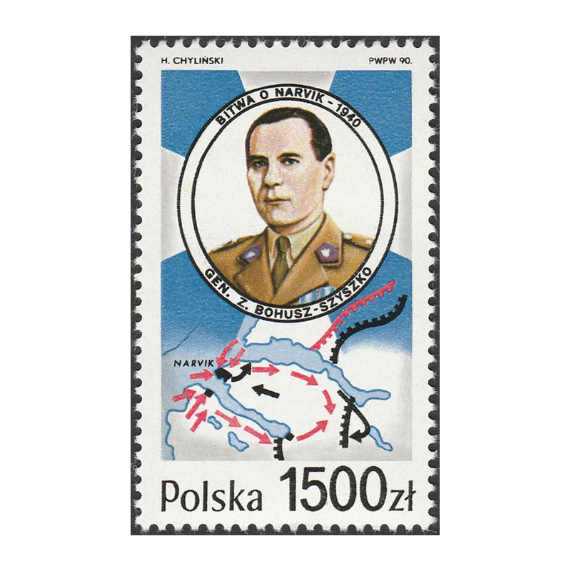50. rocznica bitwy o Narwik. Znaczek czysty bez podlepki.