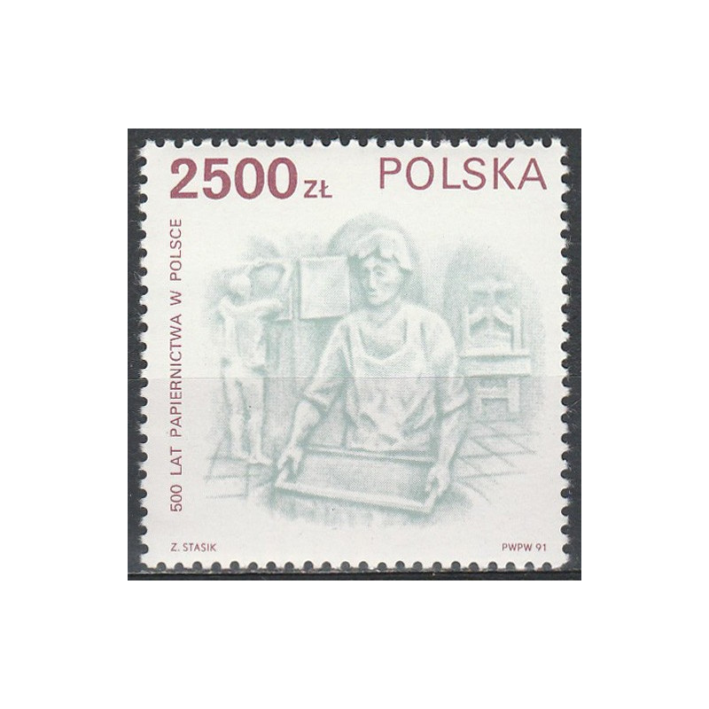 500 lat papiernictwa w Polsce. Znaczek czysty bez podlepki.