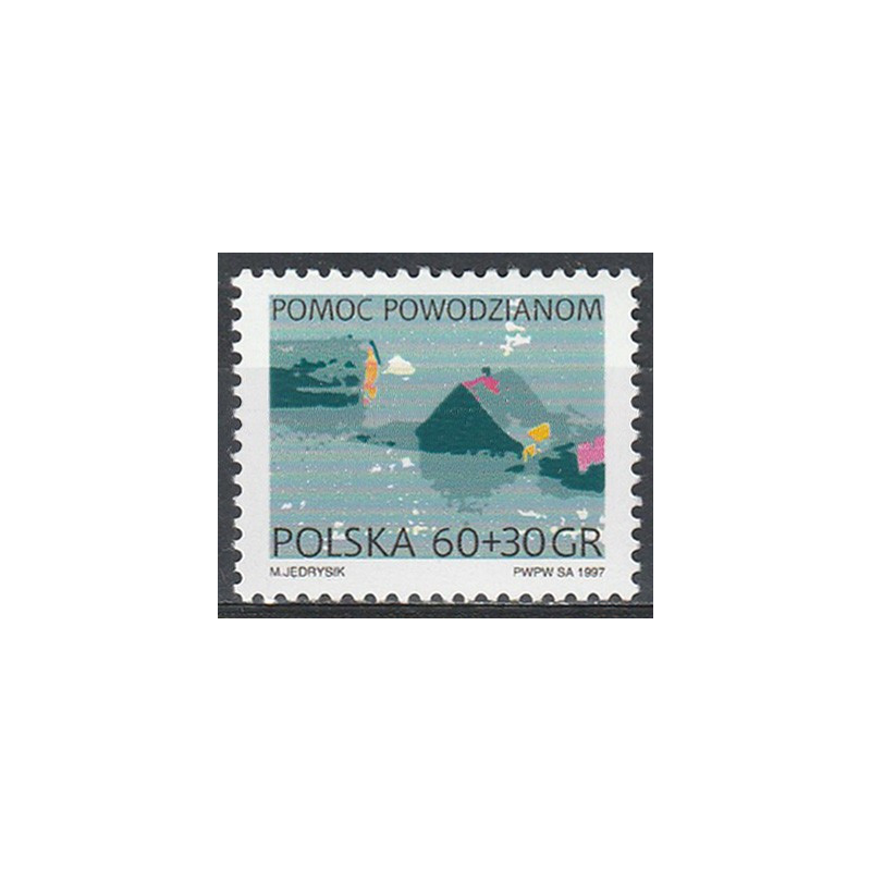 Pomoc powodzianom. Znaczek czysty bez podlepki.