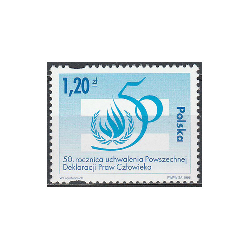 50. rocznica Deklaracji Praw Człowieka. Znaczek czysty bez podlepki.