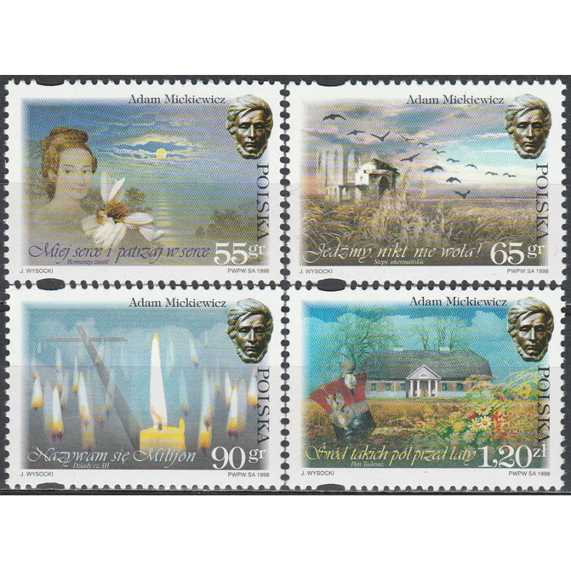 200. rocznica urodzin Adama Mickiewicza. Znaczki czyste bez podlepki.