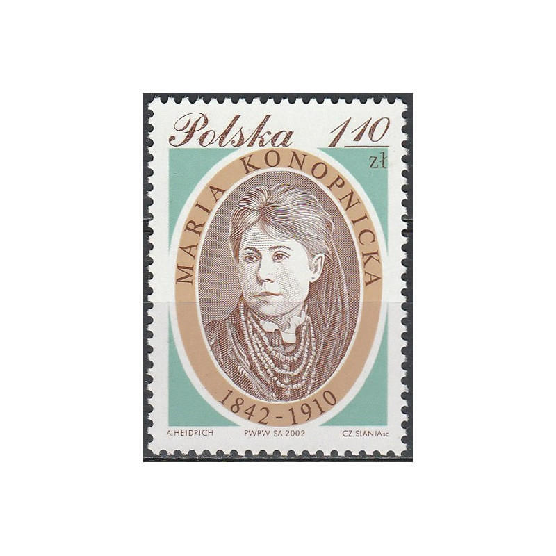 160. rocznica urodzin Marii Konopnickiej. Znaczek czysty bez podlepki.
