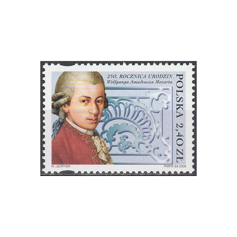 250. rocznica urodzin Wolfganga Amadeusza Mozarta. Znaczek czysty bez podlepki.