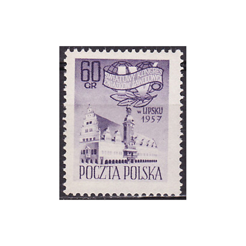 Światowy Komgres Związków Zawodowych w Lipsku. Znaczek czysty bez podlepki.