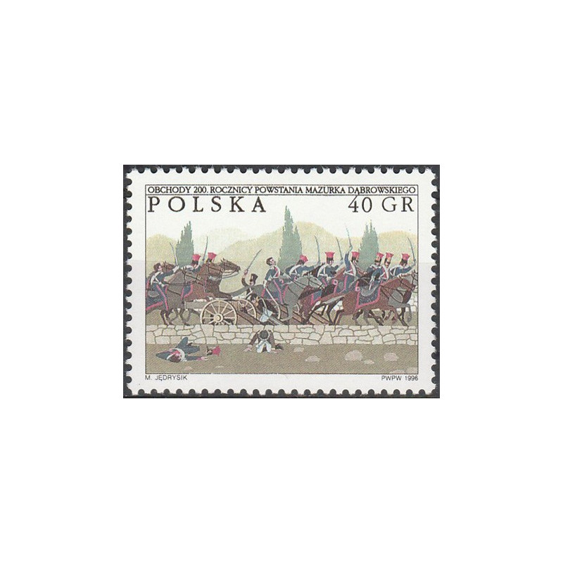 200. rocznica powstania Mazurka Dąbrowskiego (IV). Znaczek czysty bez podlepki.