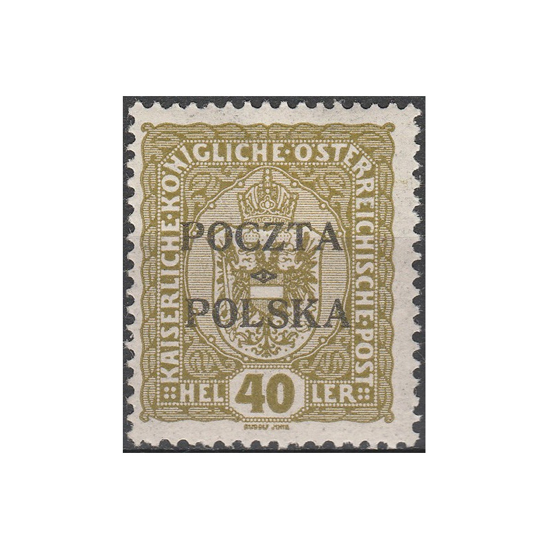 Wydanie przedrukowane na znaczkach austriackich. Znaczek czysty ze śladem po podlepce. Gwarancja Z. Wiatrowski.