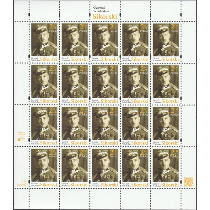 Generał Władysław Sikorski. Arkusz czysty bez podlepki.