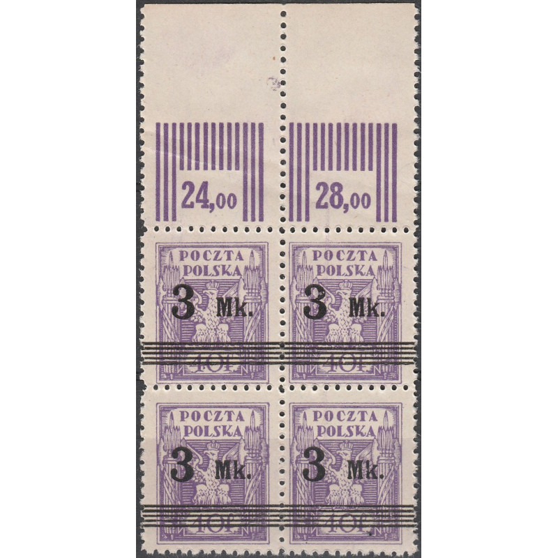 Wydanie przedrukowane. Znaczki czyste bez podlepki. Czwórka z błędem B2 na znaczku z pozycji 17 oraz uszkodzone "k". Suma kontrolna na marginesie.