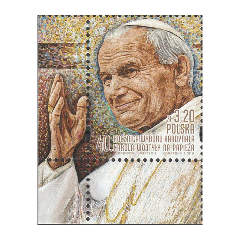 40. rocznica wyboru kardynała Karola Wojtyły na papieża. Znaczek czysty bez podlepki. Lewy dolny narożnik.
