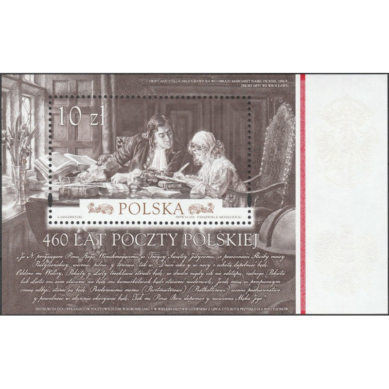 460 lat Poczty Polskiej. Blok czysty bez podlepki.