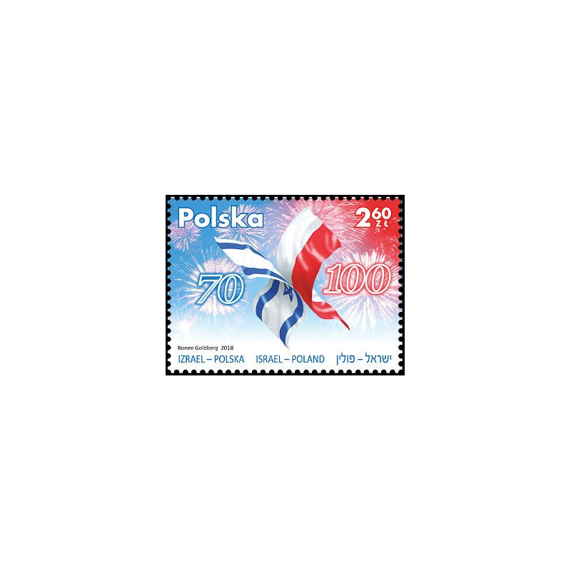Polska - Izrael. Niepodległość. Pamięć. Wspólne Dziedzictwo. Znaczek czysty bez podlepki.