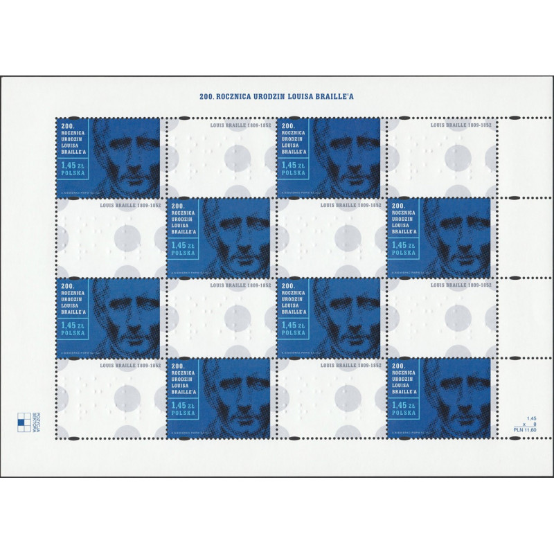 200. rocznica urodzin Louisa Braille'a. Arkusz czysty bez podlepki.