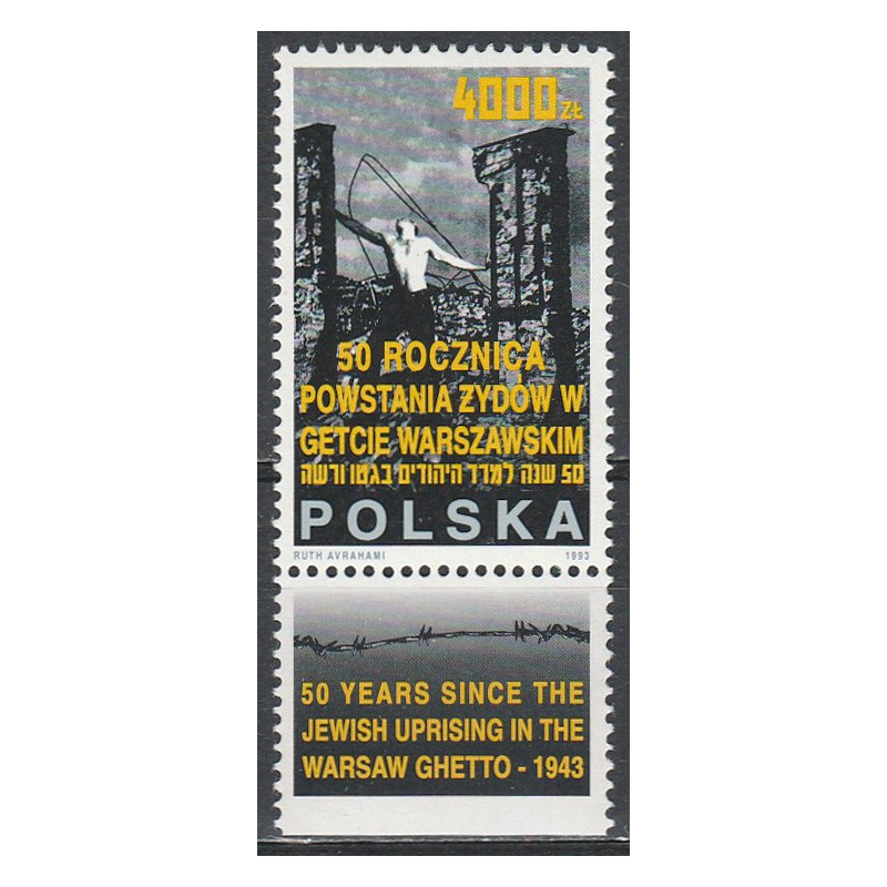 50. rocznica Powstania Żydów w Getcie Warszawskim. Wydanie wspólne z pocztą Izraela. Znaczek czysty bez podlepki, z przywieszką.