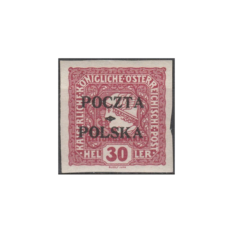 Wydanie przedrukowane na znaczkach austriackich. Znaczek czysty ze śladem po podlepce. Gwarancja Z. Wiatrowski.