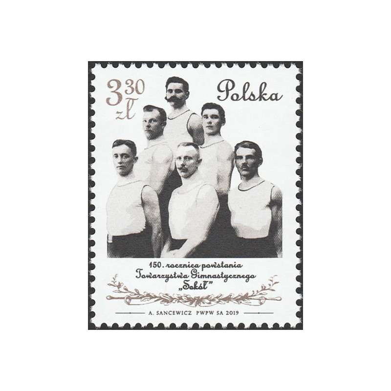 150. rocznica powstania Towarzystwa Gimnastycznego Sokół. Znaczek czysty bez podlepki.