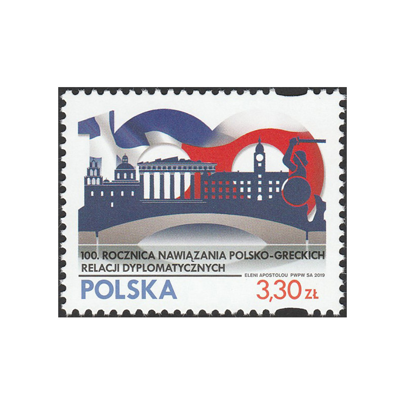 100. rocznica nawiązania polsko-greckich relacji dyplomatycznych. Znaczek czysty bez podlepki.