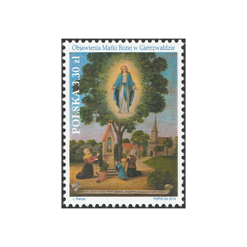Objawienia Matki Bożej w Gietrzwałdzie. Znaczek czysty bez podlepki.