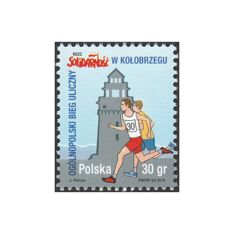 Ogólnopolski Bieg Uliczny NSZZ „Solidarność” w Kołobrzegu. Znaczek czysty bez podlepki.