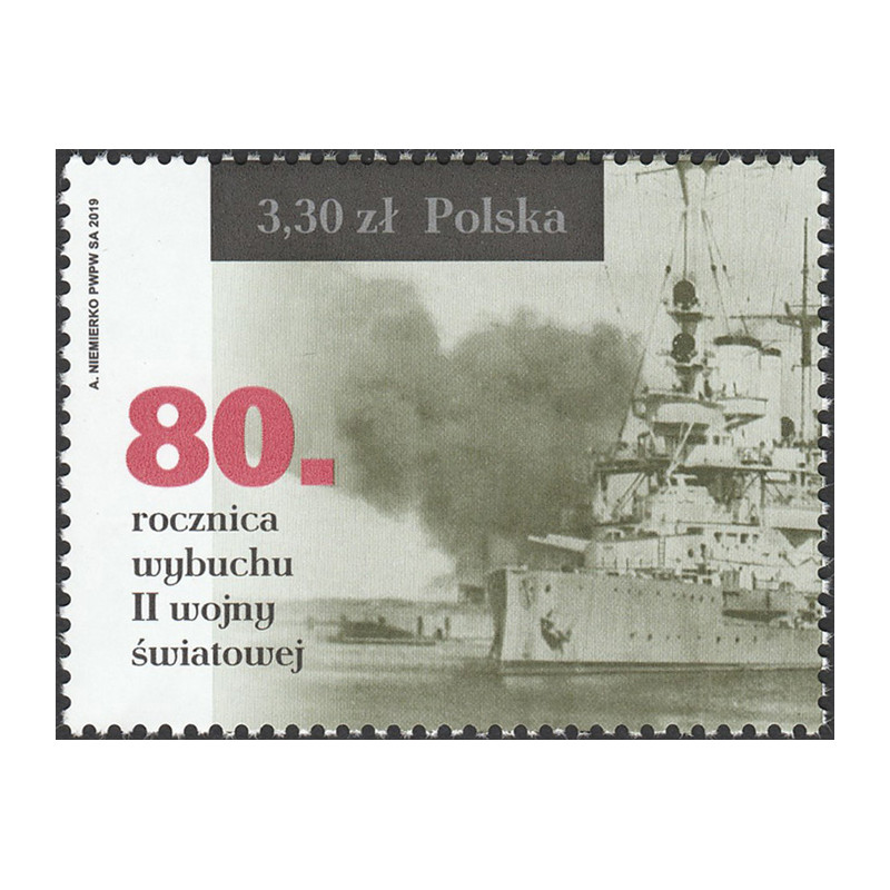 80. rocznica wybuchu II wojny światowej. Znaczek czysty bez podlepki.