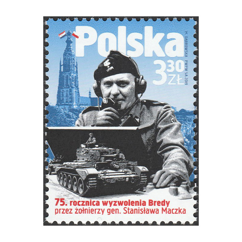 75. rocznica wyzwolenia Bredy przez żołnierzy gen. Stanisława Maczka. Znaczek czysty bez podlepki.