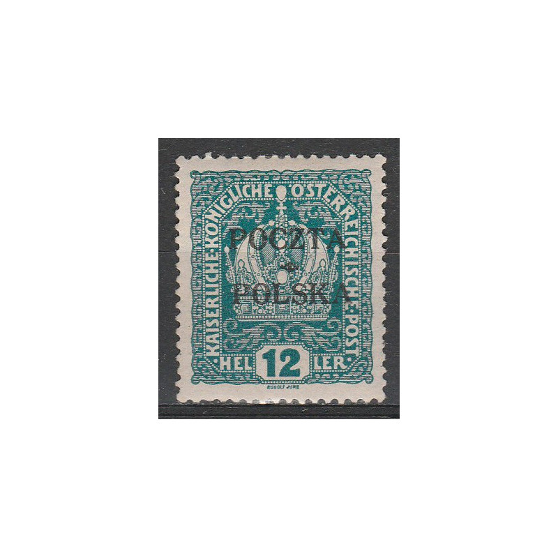 Wydanie przedrukowane na znaczkach austriackich. Znaczek czysty ze śladem po podlepce. Gwarancja Z. Wiatrowski.