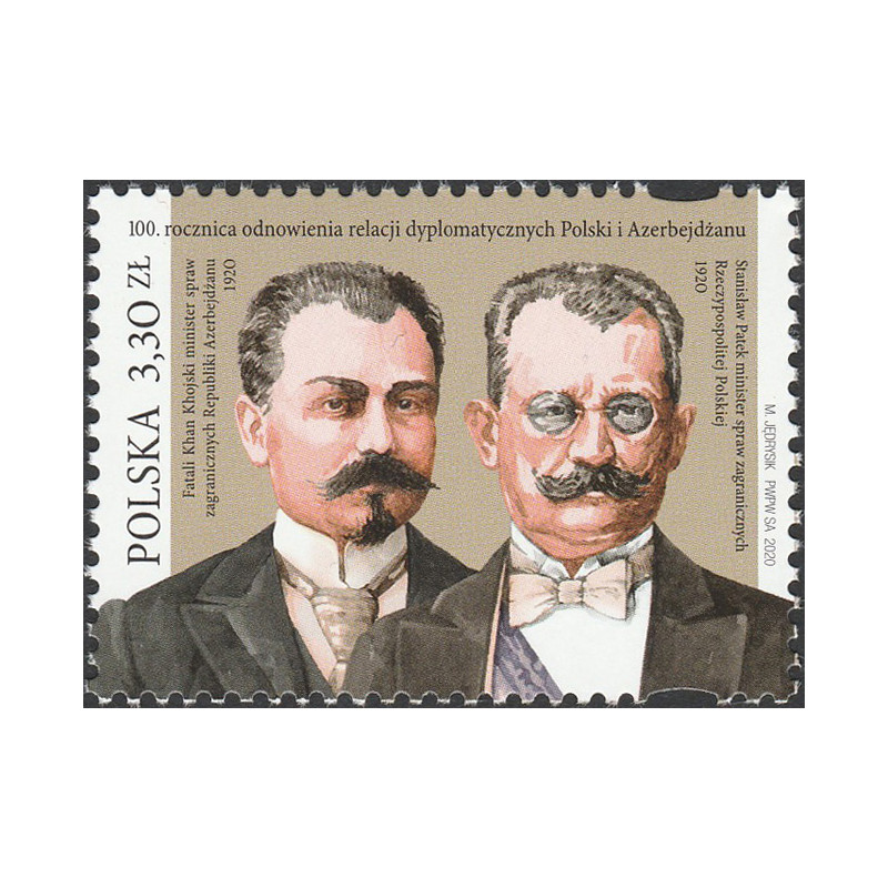 100. rocznica odnowienia relacji dyplomatycznych Polski i Azerbejdżanu. Znaczek czysty bez podlepki.