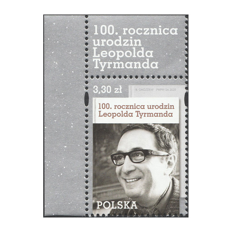 100. rocznica urodzin Leopolda Tyrmanda. Znaczek czysty bez podlepki. Nazwa emisji na marginesie.