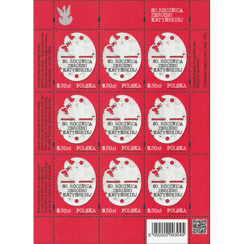 80. rocznica Zbrodni Katyńskiej. Arkusz czysty bez podlepki.