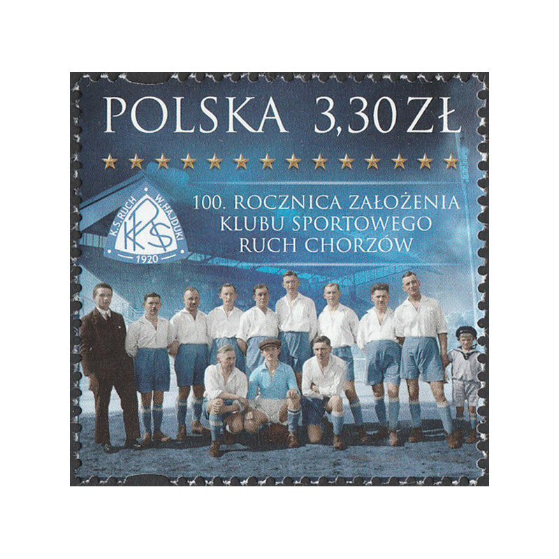 100 lat Klubu Sportowego Ruch Chorzów. Znaczek czysty bez podlepki.