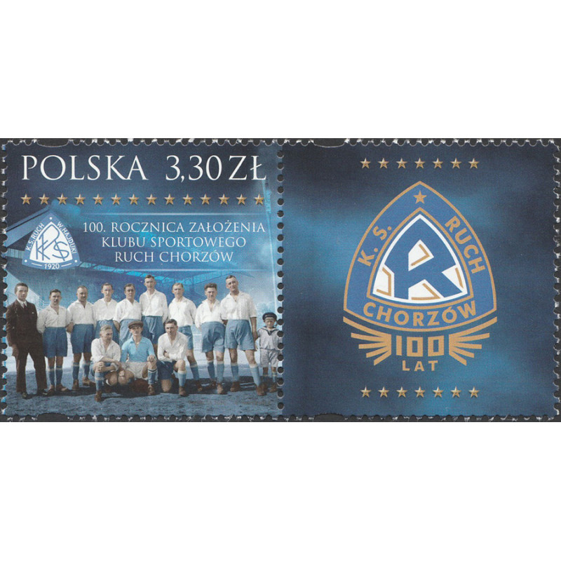100 lat Klubu Sportowego Ruch Chorzów. Znaczek czysty bez podlepki.