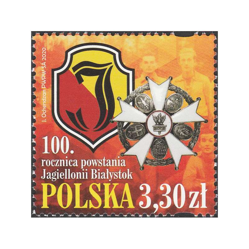 100 lat Klubu Sportowego Jagielonia Białystok. Znaczek czysty bez podlepki.