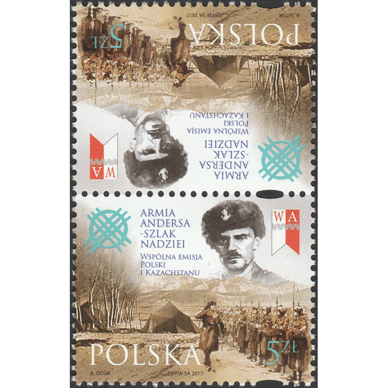 Armia Andersa - Szlak Nadziei - wydanie wspólne z Pocztą Kazachstanu. Znaczki czyste bez podlepki.