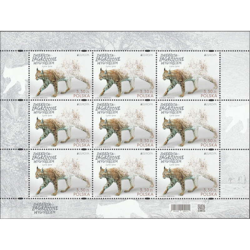 EUROPA - Zwierzęta zagrożone wyginięciem. Arkusz czysty bez podlepki.
