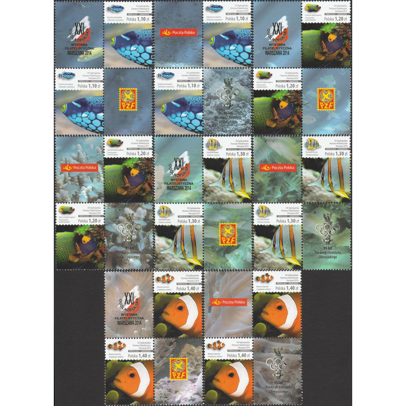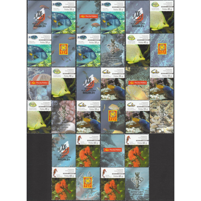 XXI Ogólnopolska Wystawa Filatelistyczna Warszawa 2014. Znaczki czyste bez podlepki z przywieszkami.