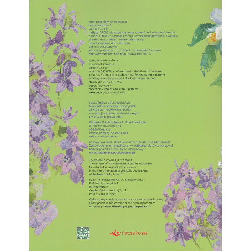 Owady pożyteczne. Arkusze czyste bez podlepki. Niepreforowane w folderze. Nakład 8000 sztuk.