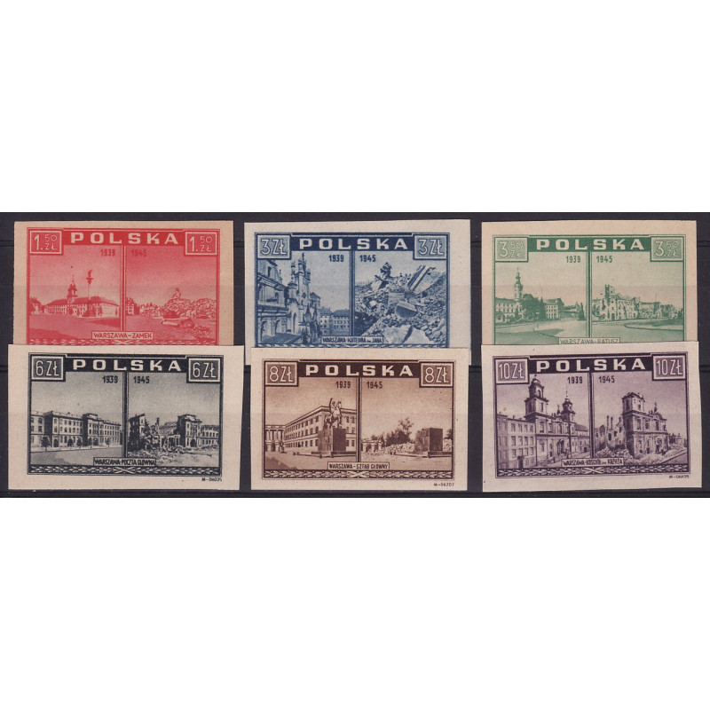 Zniszczenia wojenne Warszawy - "Warszawa oskarża". Znaczki czyste bez podlepki.