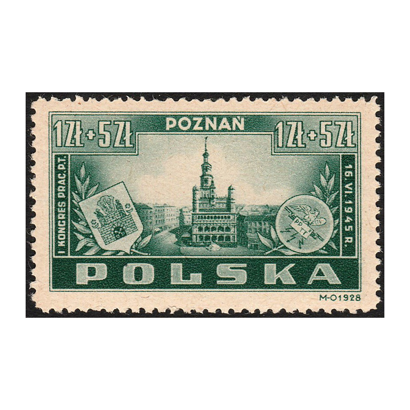 I Kongres Pracowników Poczty i Telekomunikacji w Poznaniu. Znaczek czysty bez podlepki.