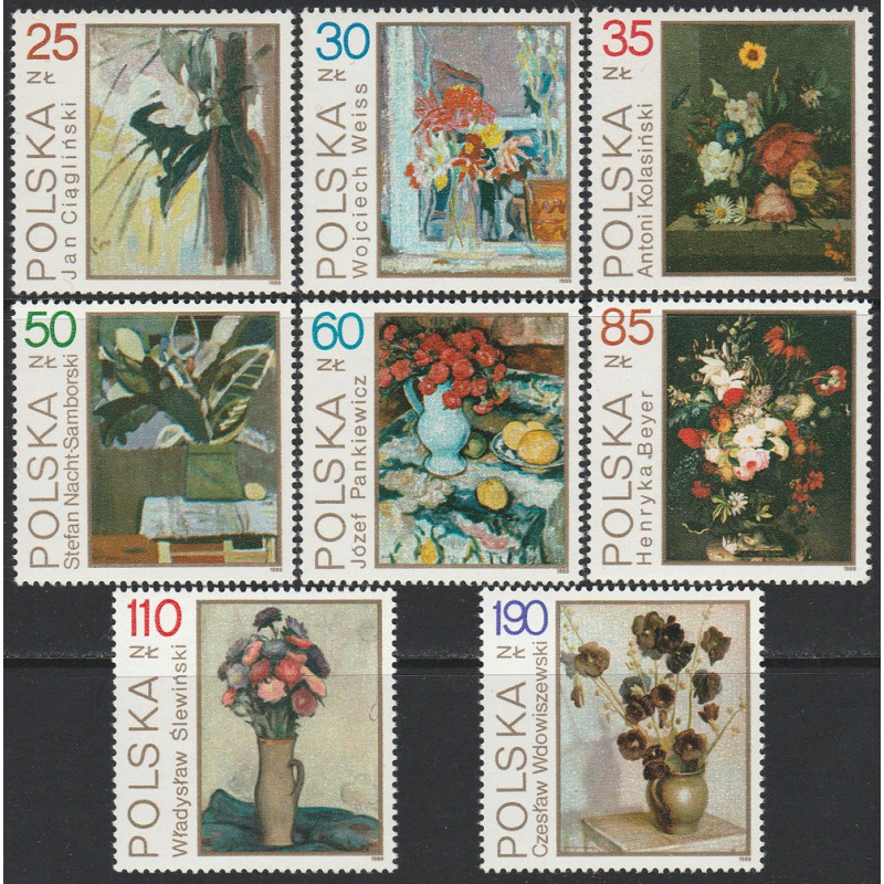 Kwiaty w malarstwie polskim. Znaczki czyste bez podlepki.